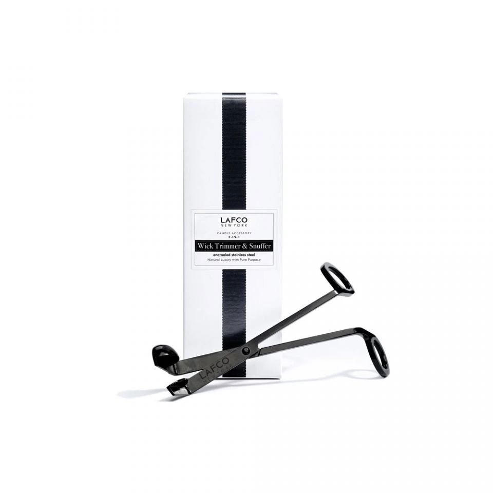 Exclusively designed by LAFCO New York, this luxurious, thoughtfully crafted wick trimmer simultaneously trims and snuffs the wick with a special blade and stores the trimming until it can be easily disposed of.